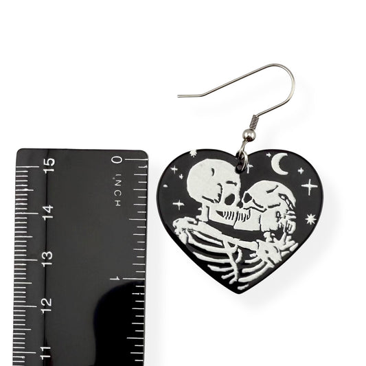 Skeleton Lovers Heart Earrings – Gothic Romance Acrylic Earrings for Halloween, Alternative Fashion & Unique Style