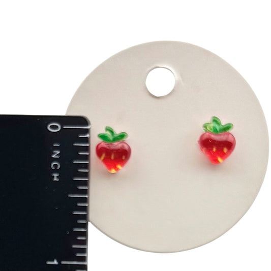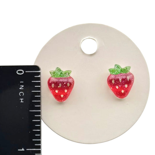Strawberry Stud Earrings – Cute Red Fruit Earrings, Acrylic Summer Jewelry
