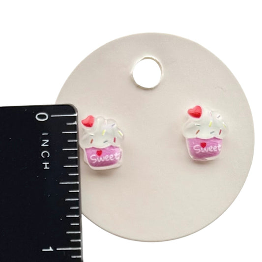 Cupcake Stud Earrings – Sweet Dessert Earrings with Sprinkles, Kawaii Acrylic Jewelry