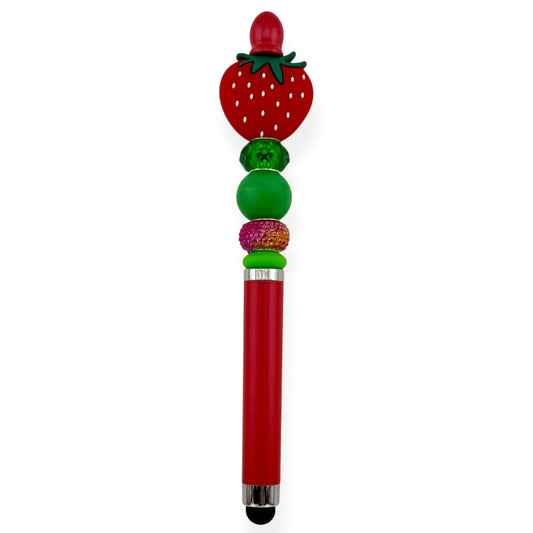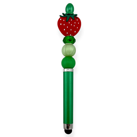 Strawberry Stylus Pen with Green Beads | Touchscreen Pen with Beaded Topper