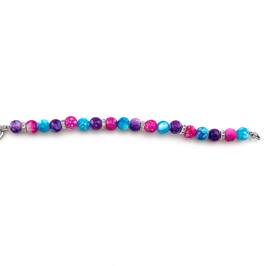 Caribbean-Themed Medical ID Bracelet – Pink, Purple & Teal Beaded Stretch Bracelet (Bracelet Only)