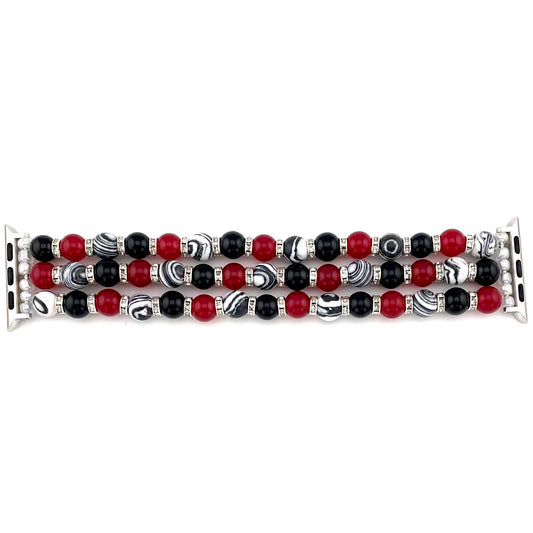 Red, Black & White Beaded Apple Watch Band – Onyx, Malachite, Glass – Stretch Bracelet Style