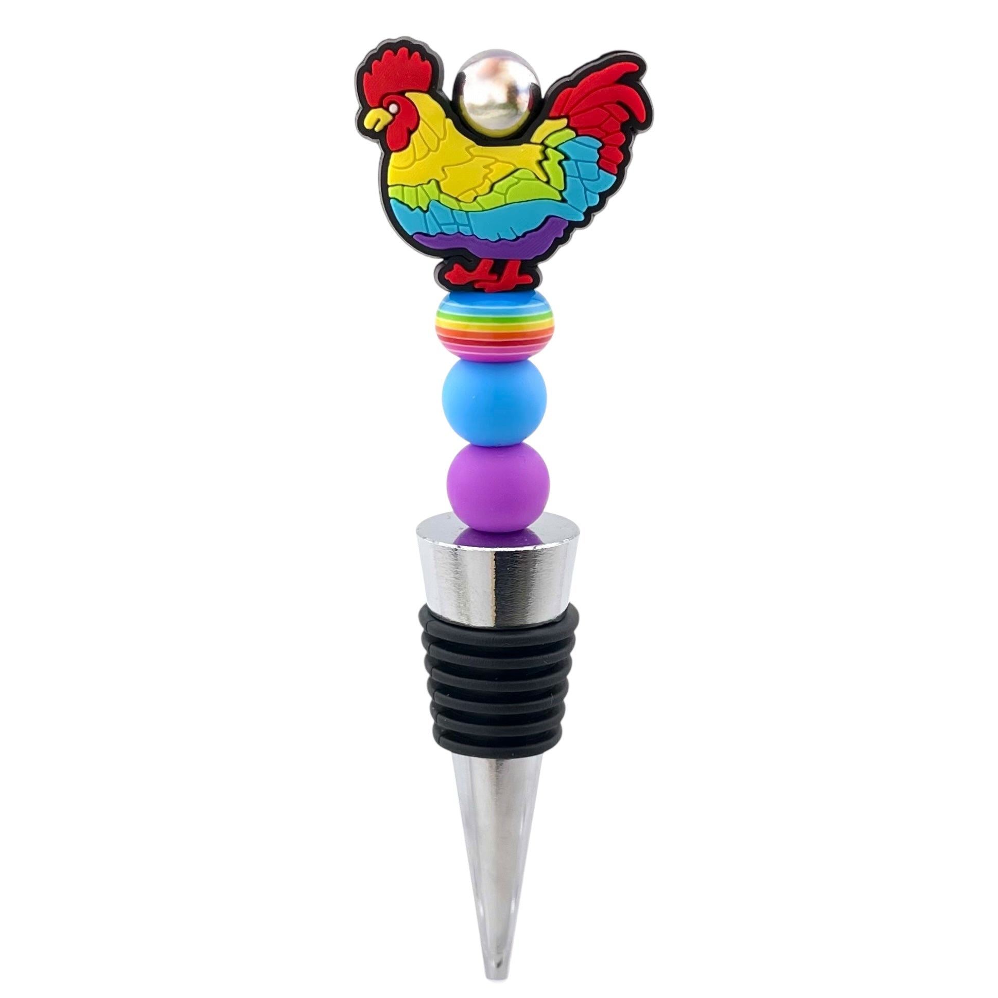 Rainbow Rooster Beaded Wine Stopper – Colorful Chicken Bottle Topper Gift