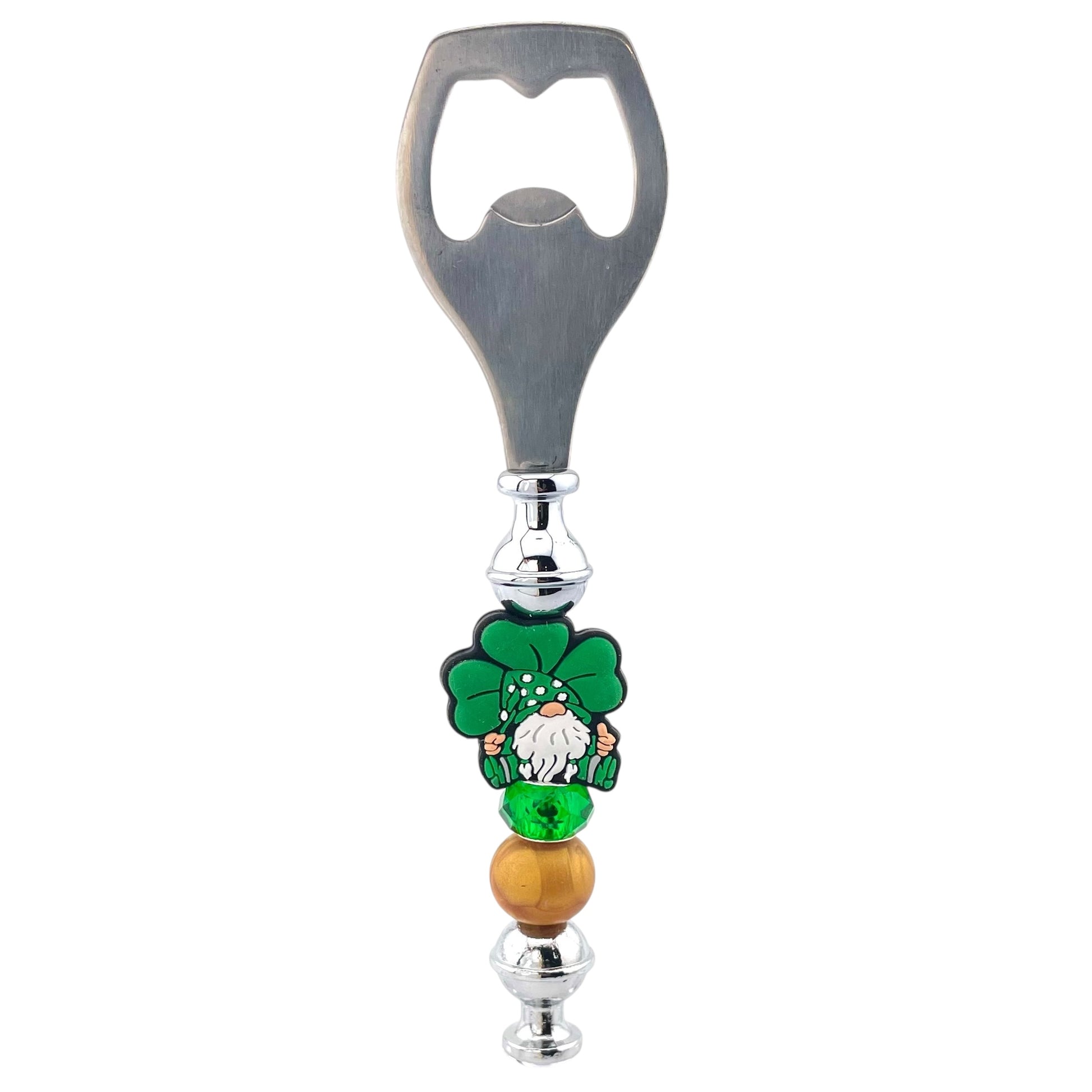 St. Patrick’s Day Gnome Beaded Bottle Opener – Shamrock & Gold